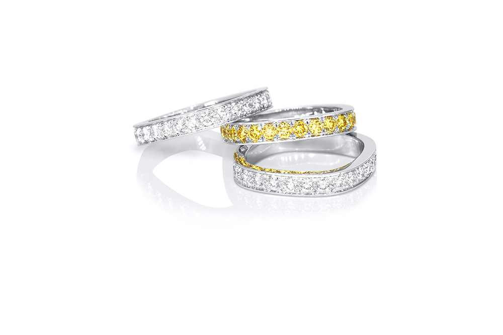 – en or blanc palladié et diamants jaunes: Alliance Carrée Jaune