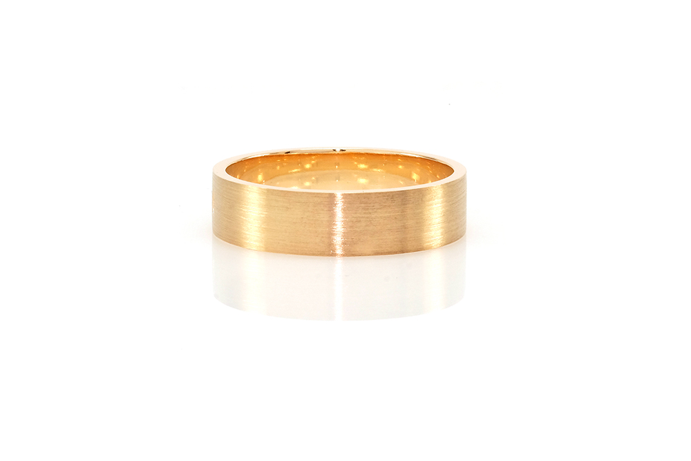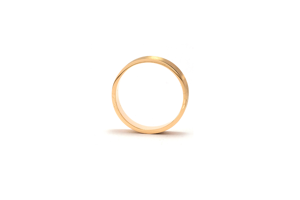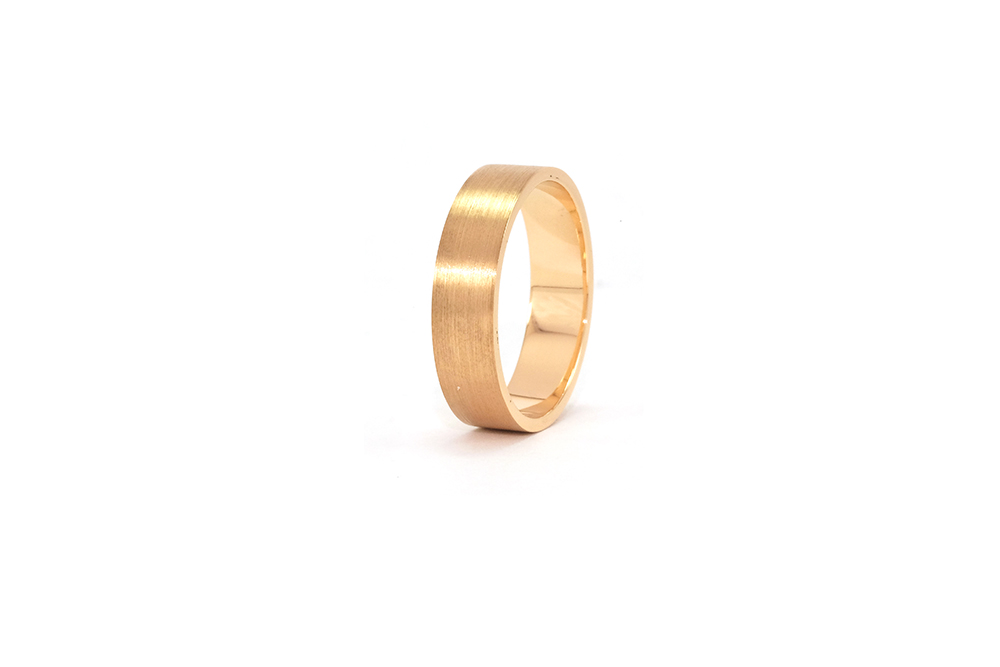 Alliance unisexe en or jaune avec une finition brossée sur le dessus.