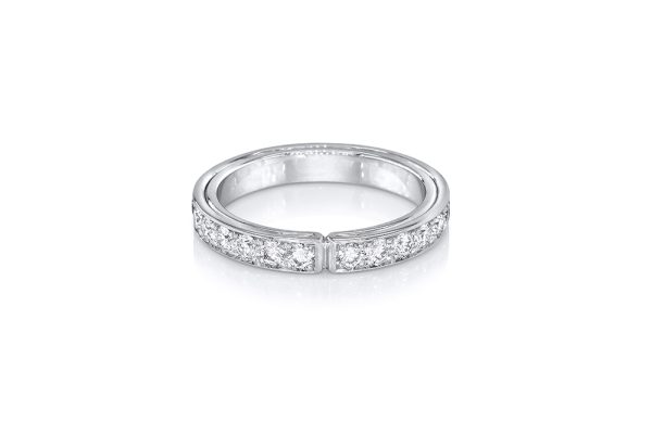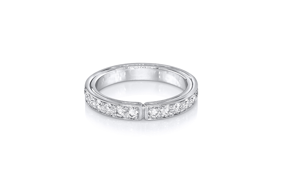 Alliance appartenant à la Collection Ruban de la Maison Arabian, déclinaison inspirée de la douceur et du soyeux de l’étoffe. Ici, un simple ruban d’or blanc 18 carats enroulé se fait le support d’une ligne de diamants.