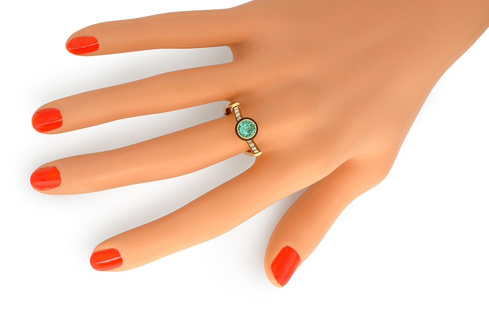 Pierre de centre : Béryl vert taille ronde, poids 0,65 carat