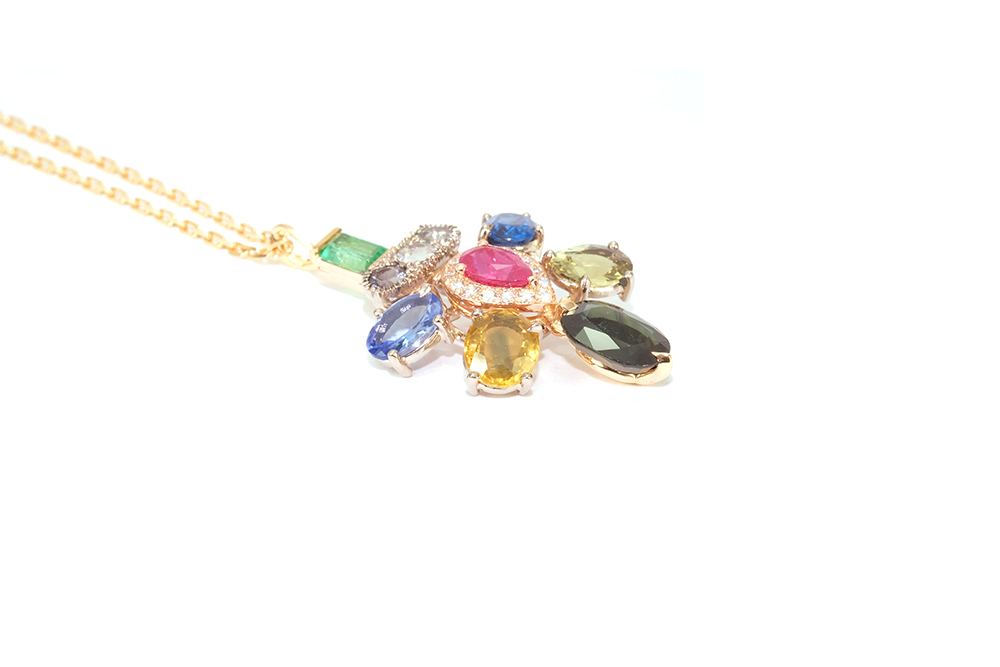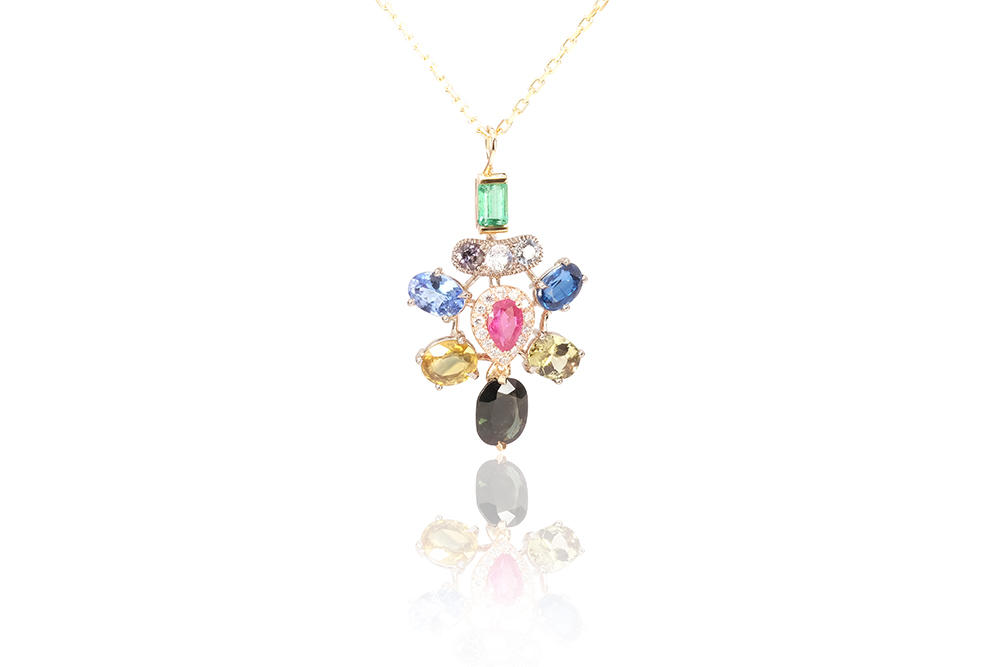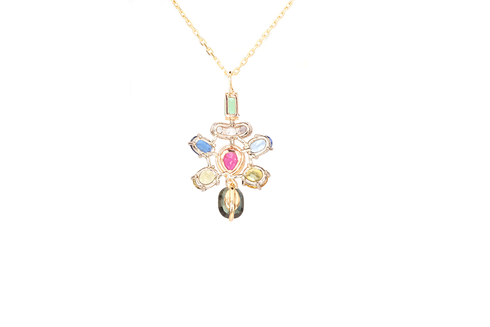 Un pendentif fait son apparition dans la Collection Epicure de la Maison Arabian, caractérisée par une conception unique tant au niveau de l’originalité des nombreux sertis que du choix des pierres.