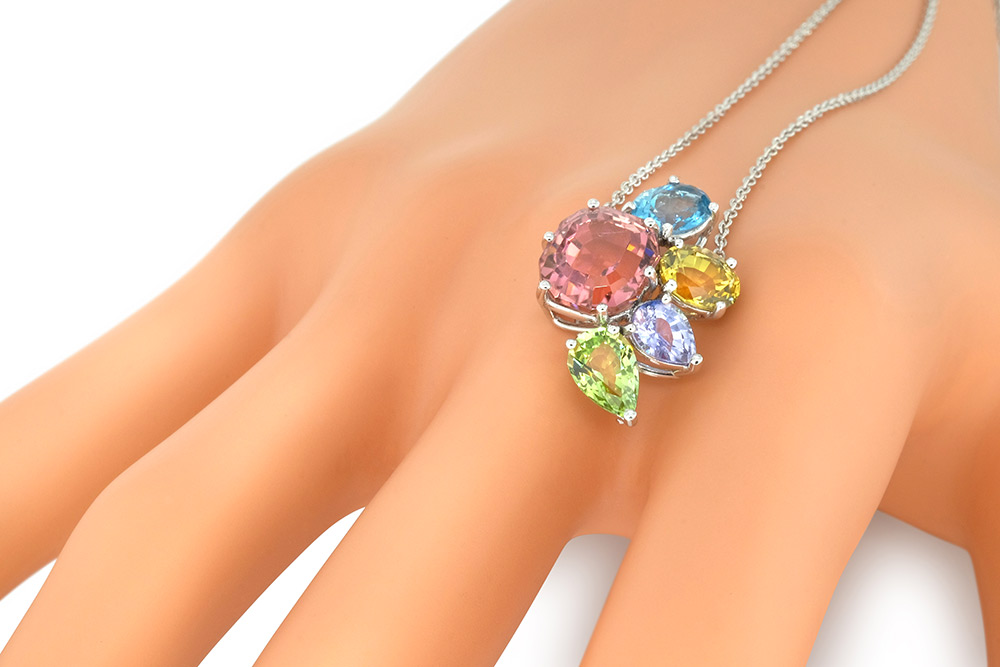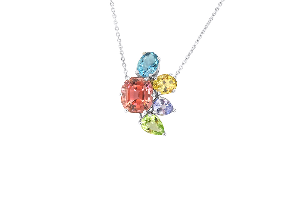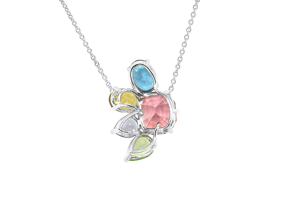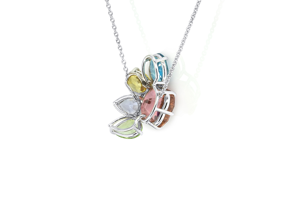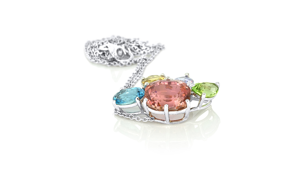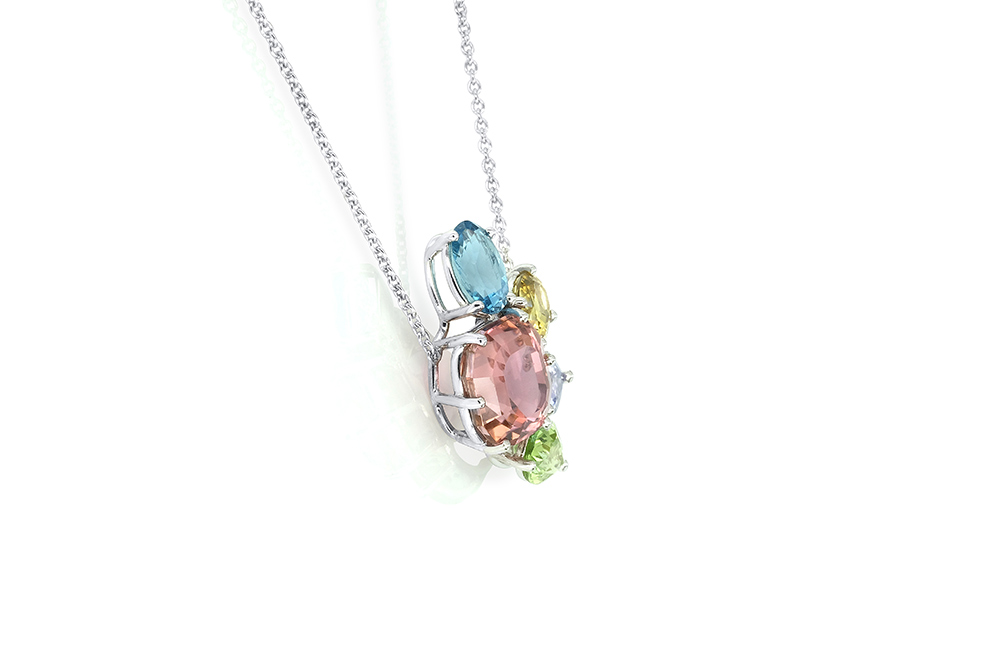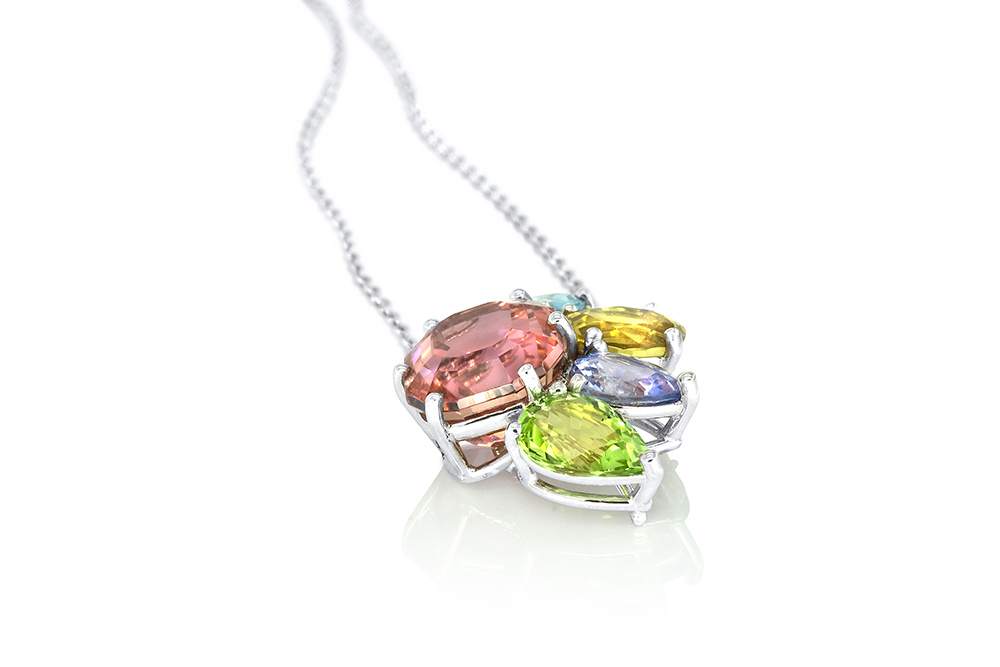 Second pendentif de la Collection Epicure de la Maison Arabian, caractérisée par une conception unique tant au niveau de l’originalité des nombreux sertis que du choix des pierres.