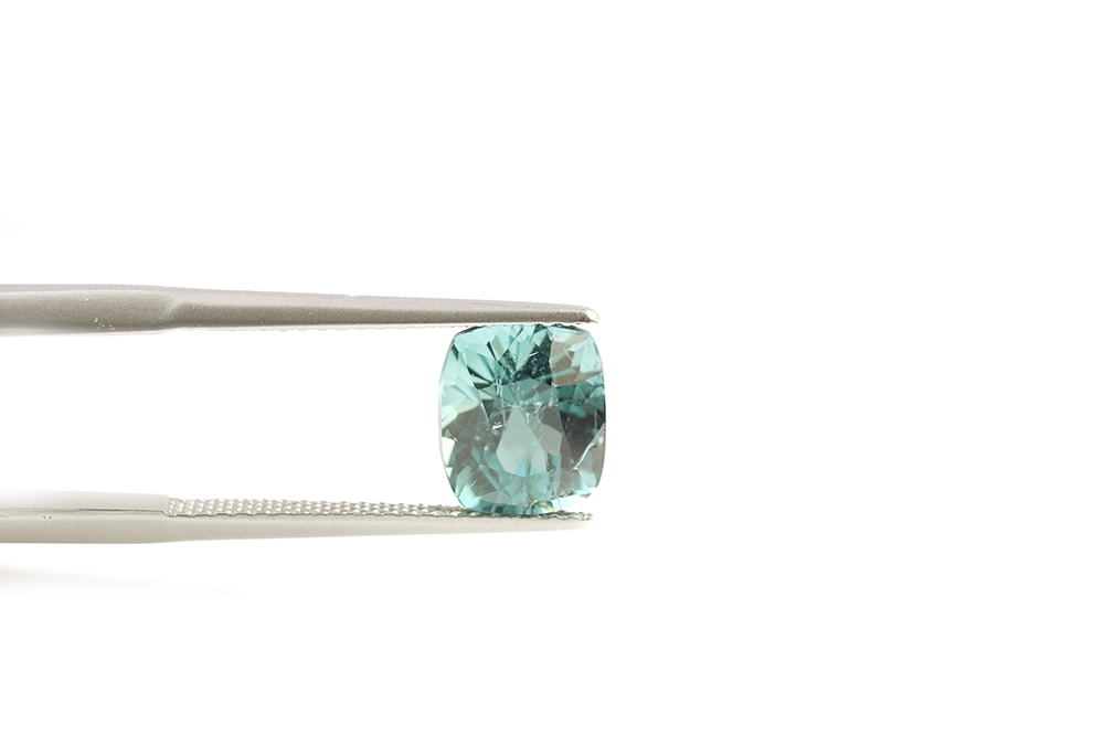 Famille : Tourmaline Couleur : Bleue Poids : 2,98 carats Taille : Coussin Spécificités : Table 8,85 mm x 7,43 mm x 6,85 mm